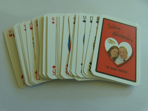 Nos mariés du jour, Sabine et Alexandre ont choisi un jeu de 32 cartes comme cadeau souvenir pour leurs invités.